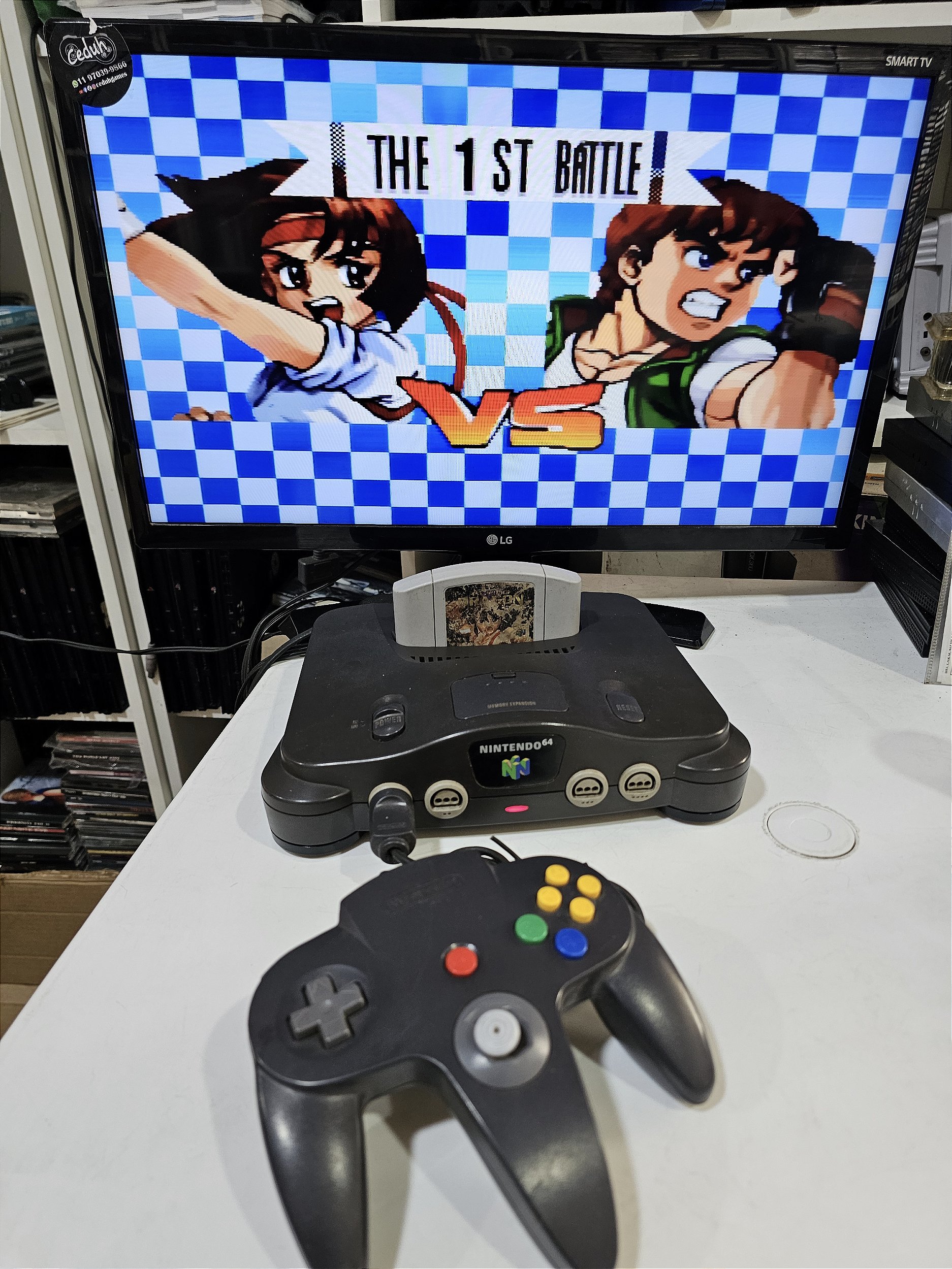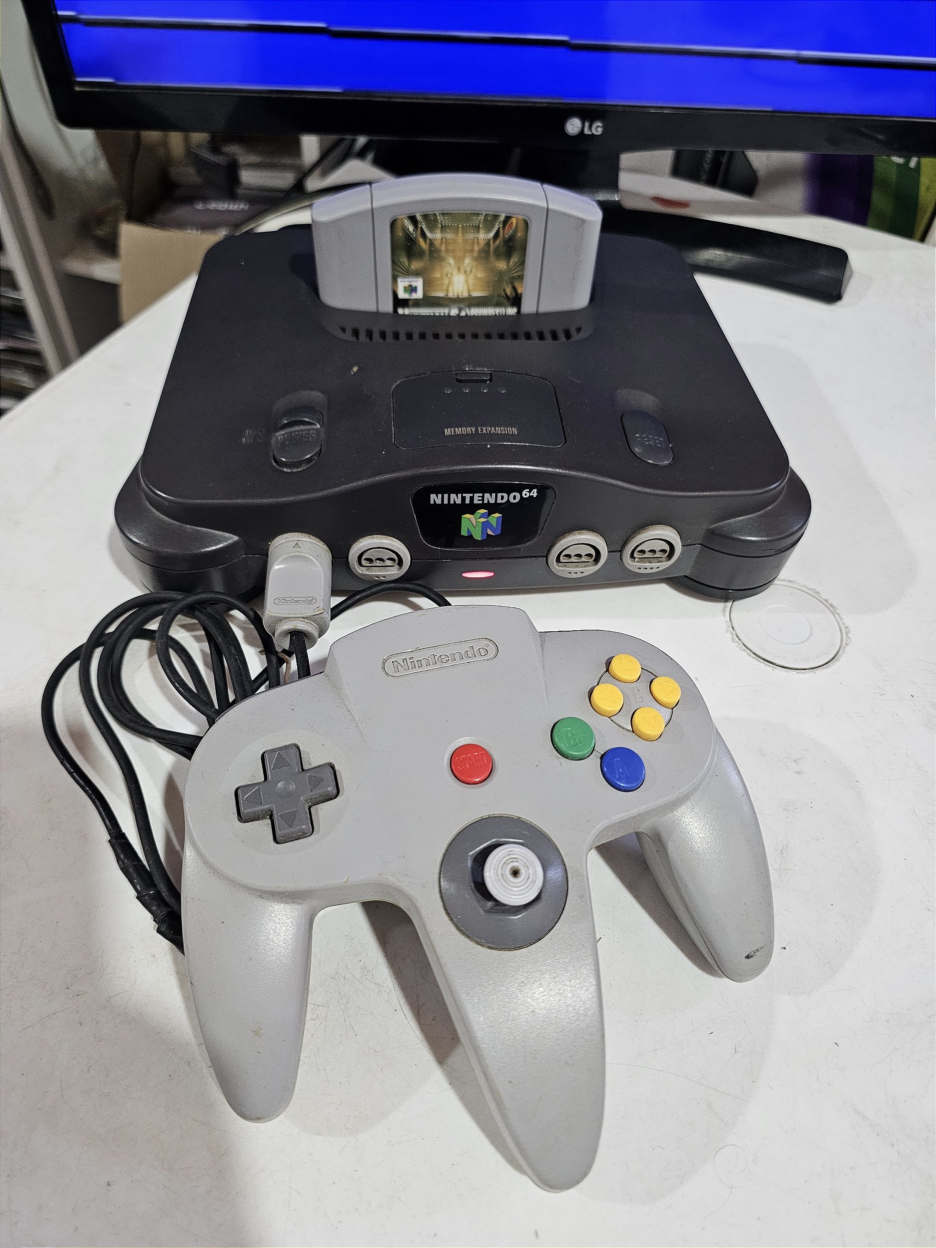 Nintendo 64 com um controle um jogo fonte e cabo AV paralelo e kit hdmi. Controle com analógico mole porém funcionando